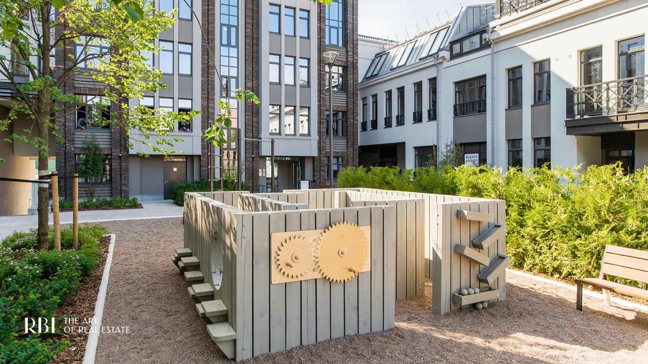 Дети оценят необычный игровой комплекс - развивающий деревянный лабиринт. Подросткам придётся по вкусу спортивная площадка, а ваших гостей не оставит равнодушными стильный арт-объект — деревянная пирамида.
