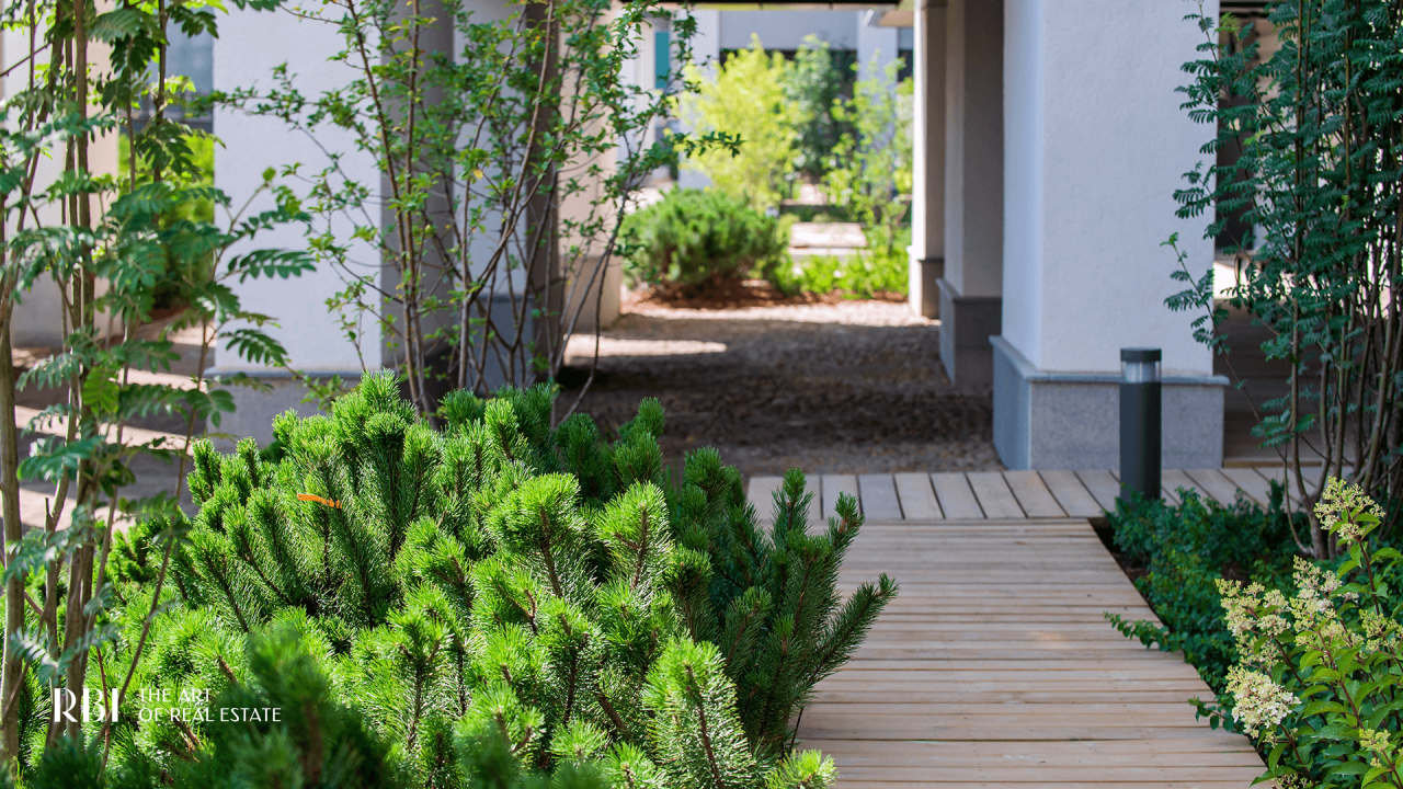 Всё его пространство максимально наполнено зеленью. Здесь можно прогуляться по стильным деревянным настилам или живописной брусчатке. Декоративная подсветка в вечернее время добавит романтики и особой прелести вашим прогулкам. А свободный WI-FI обеспечит комфорт.
